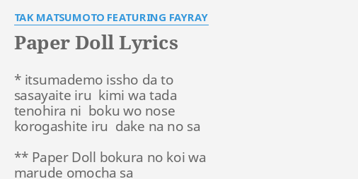 Paper Doll Lyrics By Tak Matsumoto Featuring Fayray Itsumademo