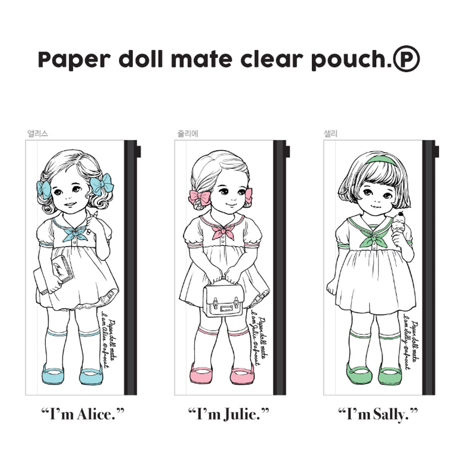 Korean Paper Doll Mate Cute Pouch Case Cosmetic Pouch 3 Colors On