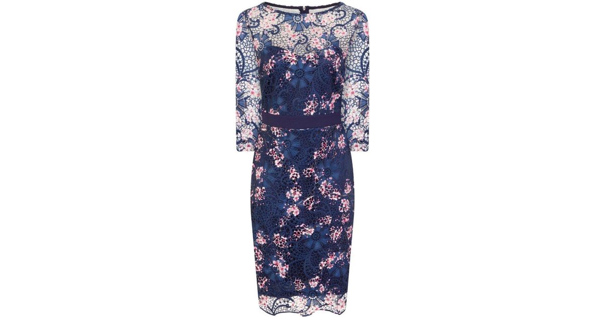 Dorothy Perkins Paper Dolls Navy Bloom Print Lace Dress In Blue Lyst