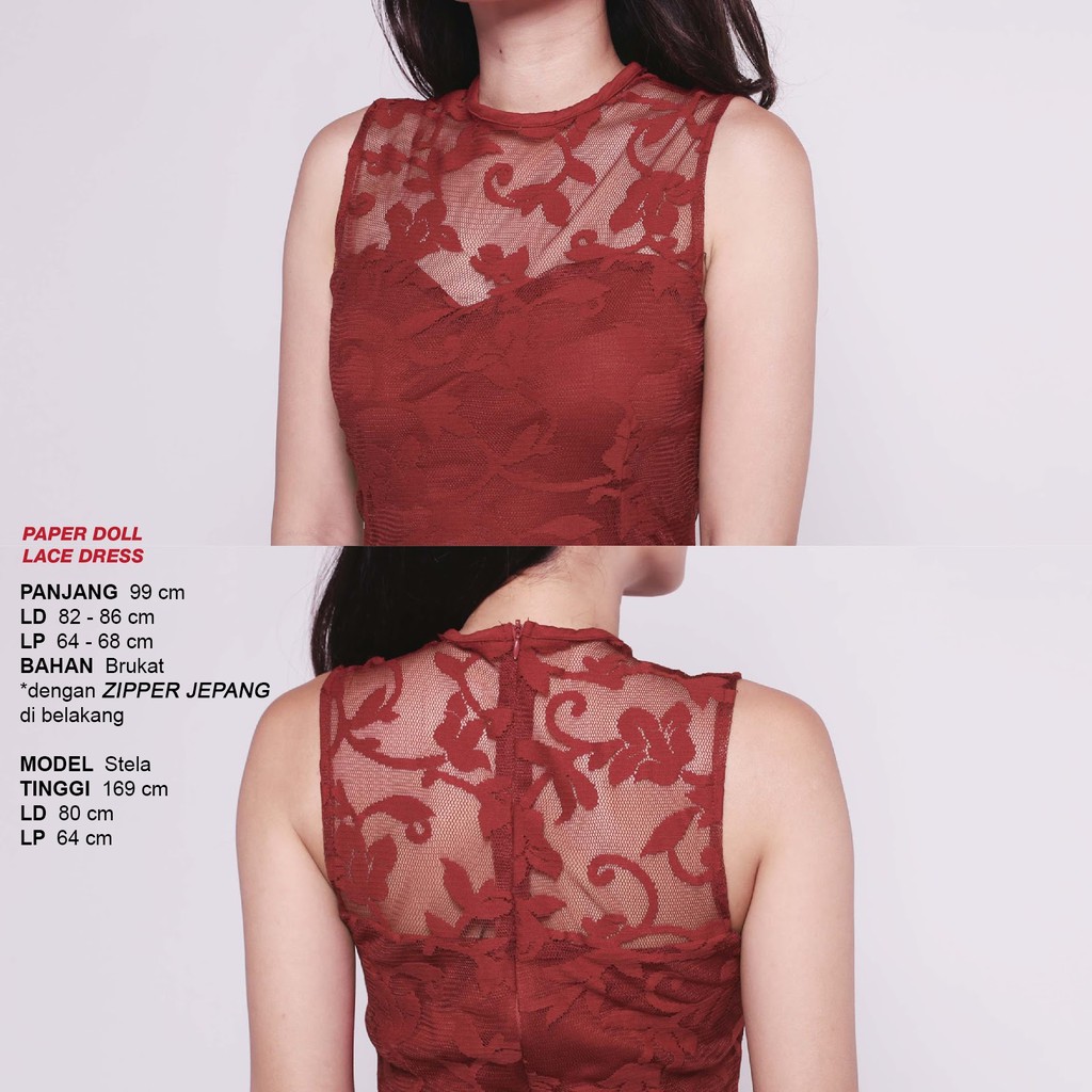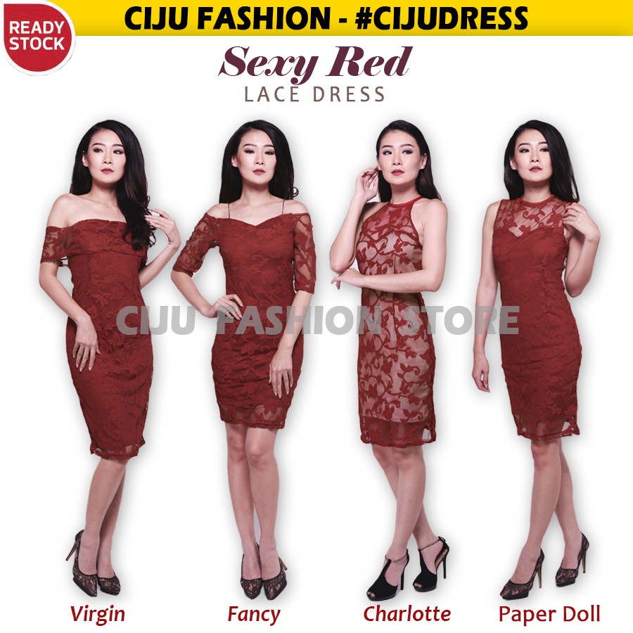 Sexy Red Lace Party Dress Gaun Brukat Wanita Merah Maroon Sexy